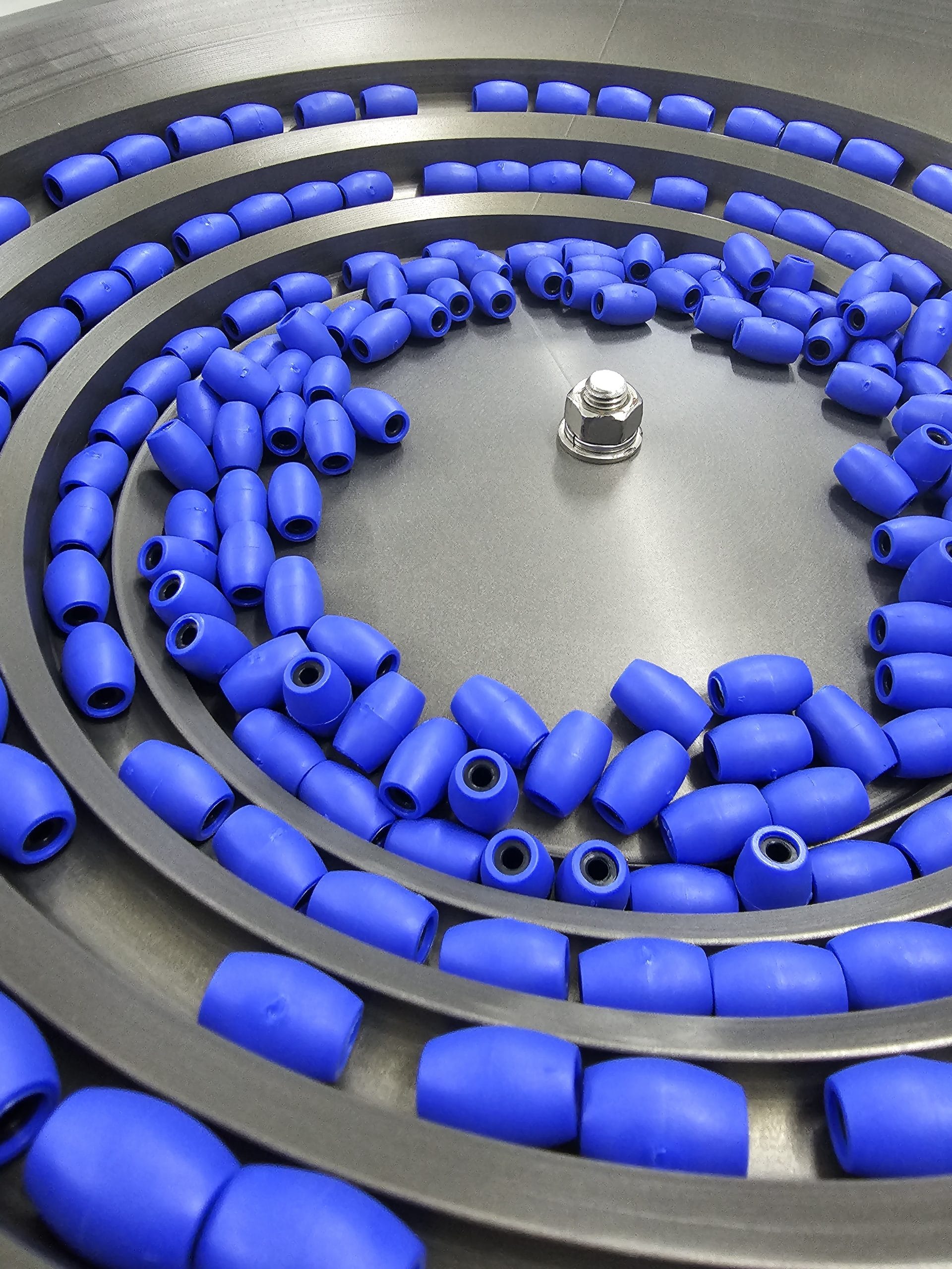 Polyamide, Nylon, Teflon or Aluminum for special applications feeder bowls are designed on 3D-CAD and manufactured on up to date 5-axis milling machines.